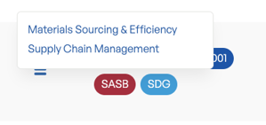 - For example, hovering over "SASB" will show "Materials Sourcing & Efficiency" and "Supply Chain Management".